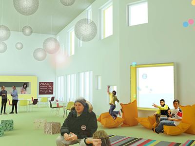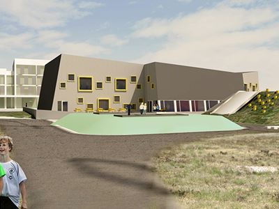 Fritidscenteret udstråler at det er et sted til børn. Alle de udendørs aktiviteter samt en stor transparens i bygningen, så man også udefra kan få et indblik i hvad der foregår af aktiviteter i de store aktivitetsrum, som er centralt placeret i bygningen.